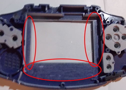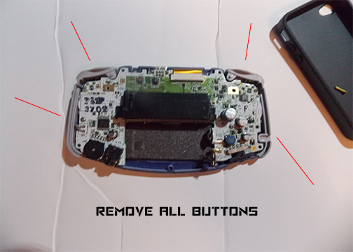 Remove the motherboard, the rubber membranes, and the old screen (You may want to clean the case and buttons with hot water and soap)