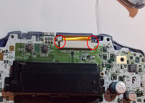 Remove the ribbon cable from the bail, by lifting up on the two brown tabs