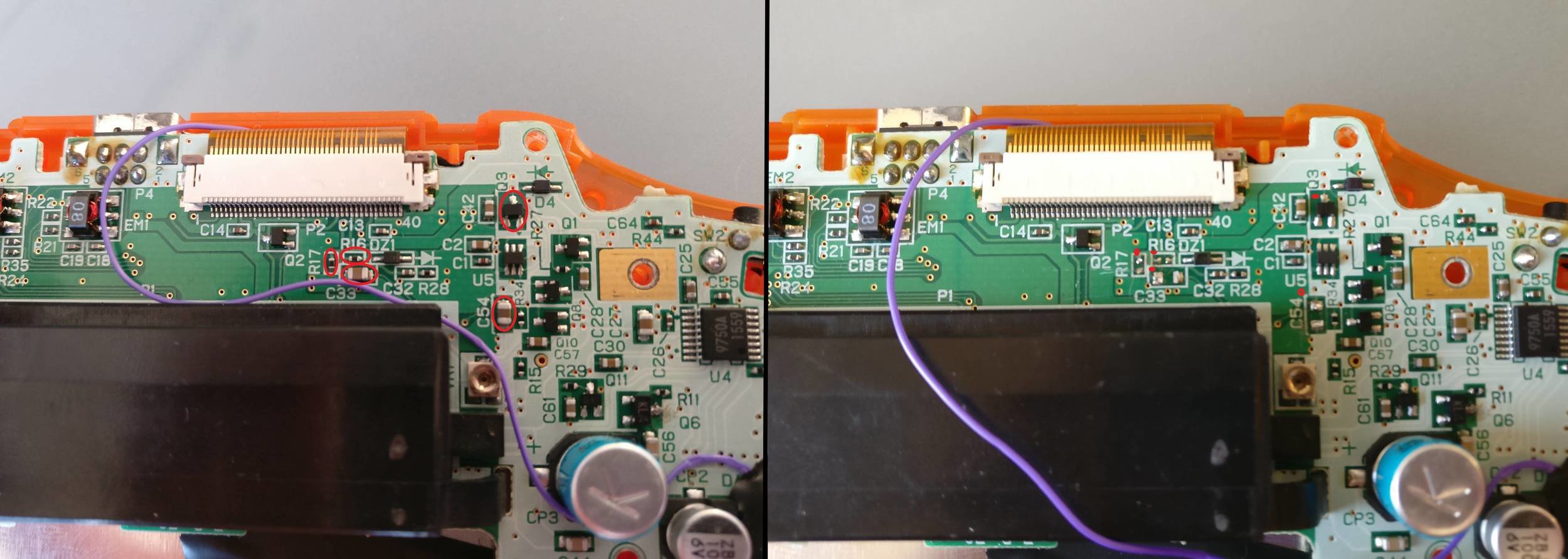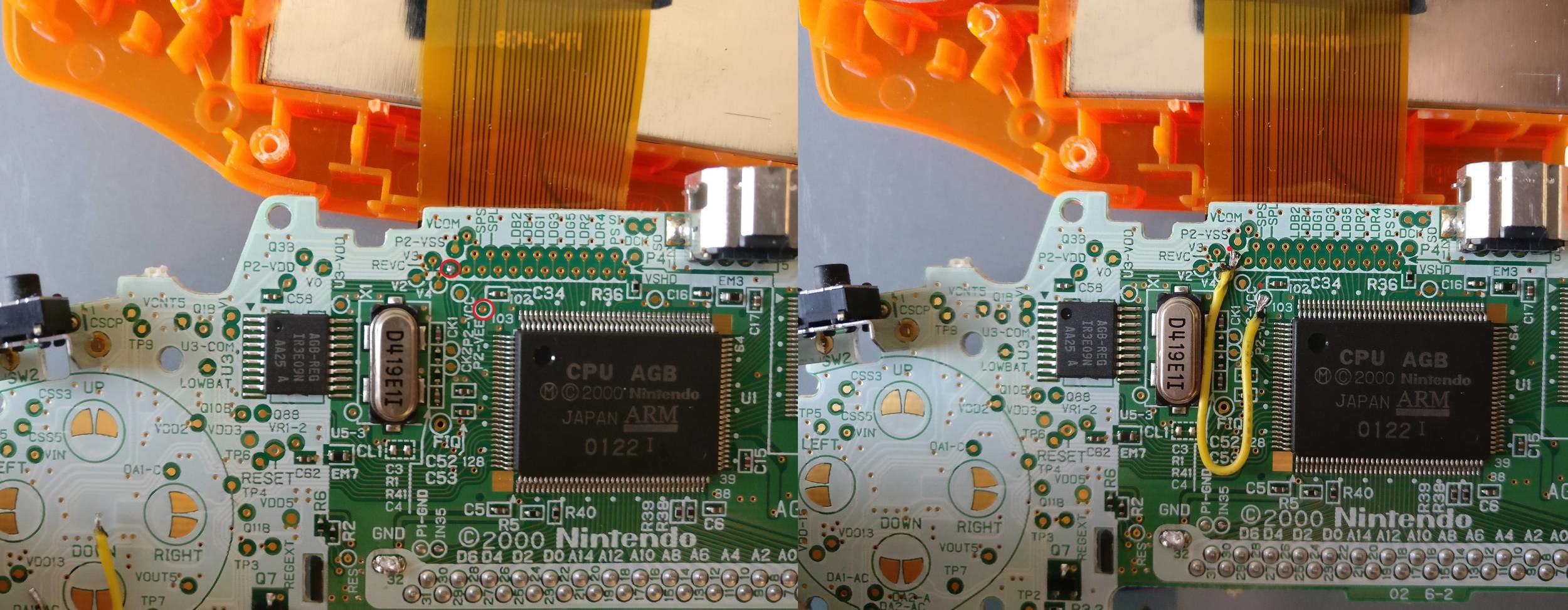 Solder the wire which leads to the adapter to the left leg of “DA1” to provide power to the screen